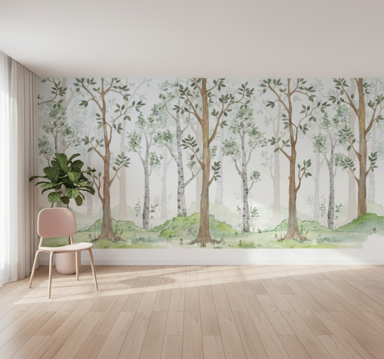 Papier peint forêt brise bois pastel