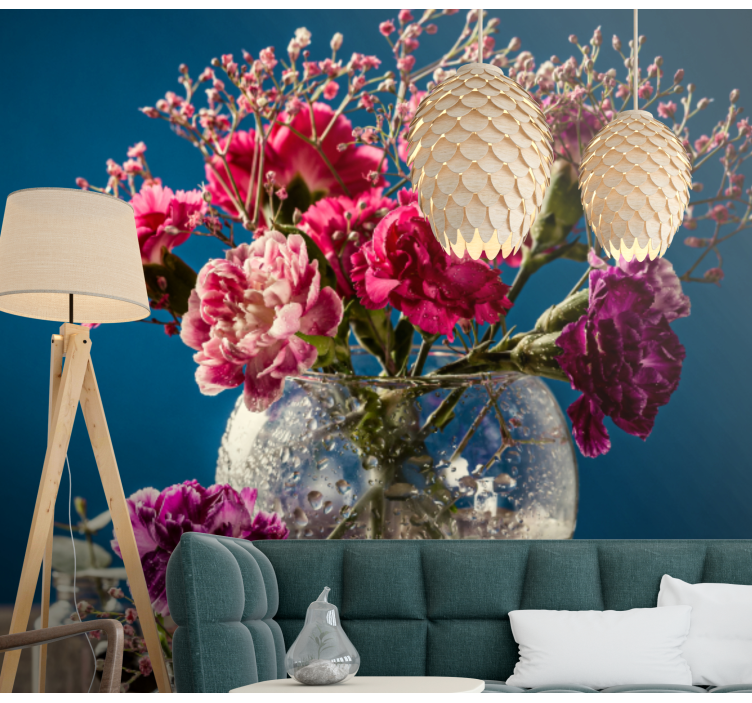 Découvrez la tapisserie fleur composition de fleurs Éveillées, une œuvre d'art qui sublime votre intérieur avec un design captivant. Ce motif enchanteur, riche en détails, présente des clous de girofle, des verres scintillants, des fleurs délicates, des œillets colorés, une flore luxuriante, un vase élégant et des gouttelettes de rosée, créant une ambiance florale rafraîchissante qui éveille les sens.