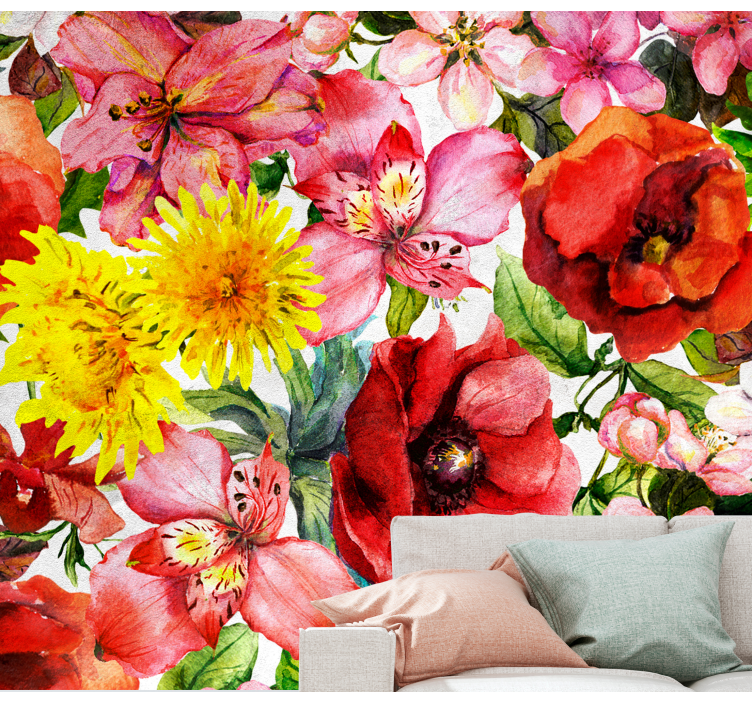Plongez dans un univers floral enchanteur avec notre tapisserie fleur composition de fleurs vibrantes. Ce magnifique design, orné de coquelicots, de marguerites, de roses et de fleurs sauvages, évoque l'aquarelle dans toute sa splendeur. Son motif fleuri apporte une touche de fraîcheur et de légèreté à votre intérieur, transformant chaque mur en une véritable œuvre d'art.
