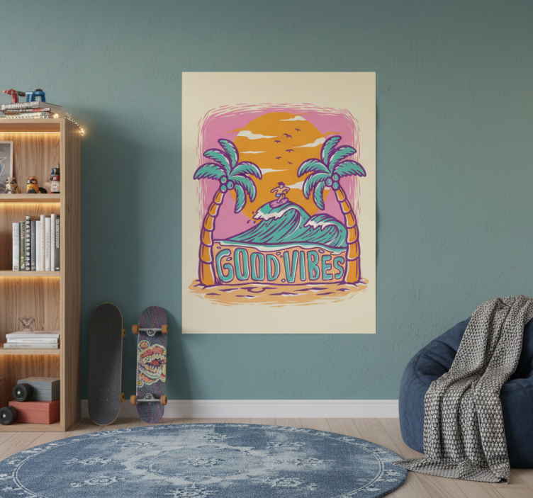 Le Poster ados good vibes surf est une invitation à la positivité et à l'aventure ! Il transforme n'importe quel espace en un havre de paix et de créativité. Imaginez votre adolescent s’épanouir dans un environnement inspiré par les valeurs de liberté et de fun que ce poster véhicule !
