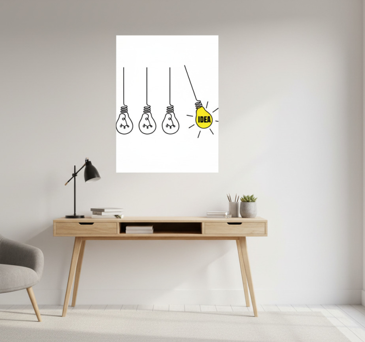 Référence: G673Apportez une touche d'inspiration à votre espace de travail avec le Poster bureau ampoules d'idée. Ce magnifique design lumineux, avec ses ampoules représentant des idées brillantes, transforme n'importe quel bureau en un lieu stimulant. Les couleurs éclatantes et les motifs captivants éveillent la créativité, invitant à la réflexion et à l'enthousiasme. Ce poster est plus qu'un simple élément décoratif; il incarne une atmosphère de dynamisme et d'innovation !