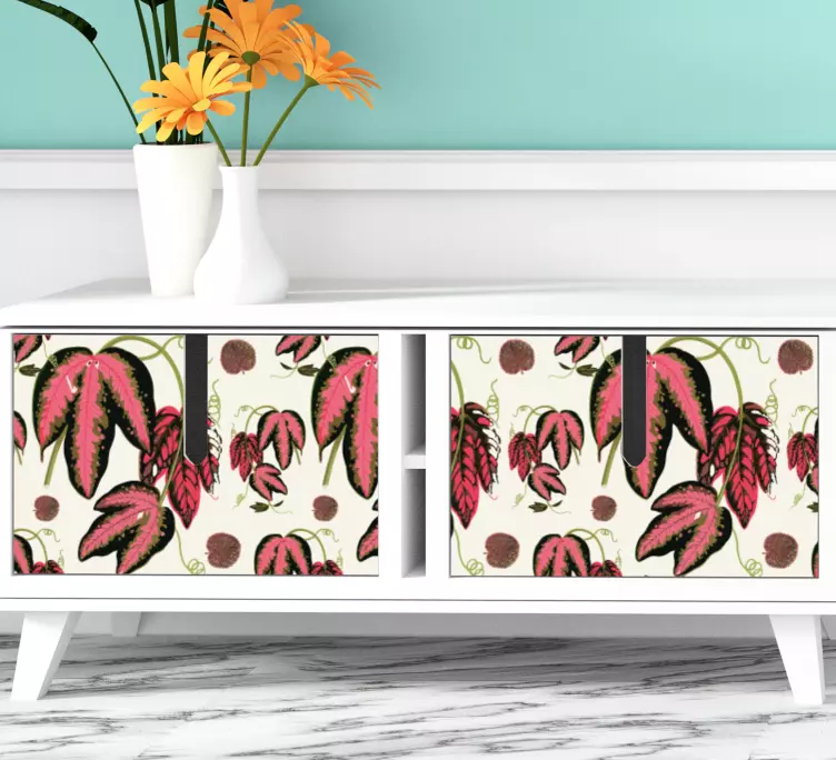 Transformez votre espace avec notre adhésif meuble design à motifs feuillus ! Ce modèle captivant s'inspire des feuilles de marante et de la beauté de la nature. Avec des illustrations botaniques colorées et vibrantes, cet adhésif apportera une touche décorative tropicale à vos meubles, les rendant uniques et accueillants.