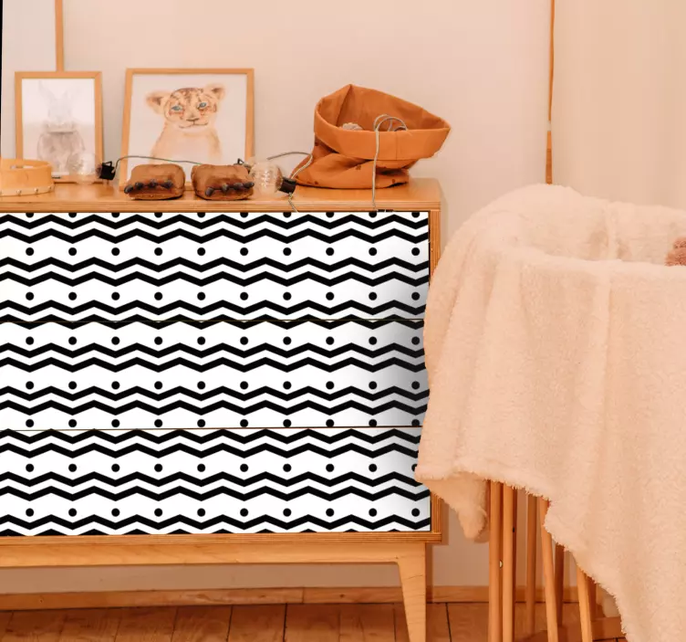 Découvrez notre adhésif meuble motif chevrons élégants, un véritable atout pour sublimer votre intérieur avec son design moderne et géométrique. Ce motif en noir et blanc, avec ses lignes en zigzag, apporte une touche d'élégance à vos meubles, transformant chaque pièce en un espace raffiné et contemporain.