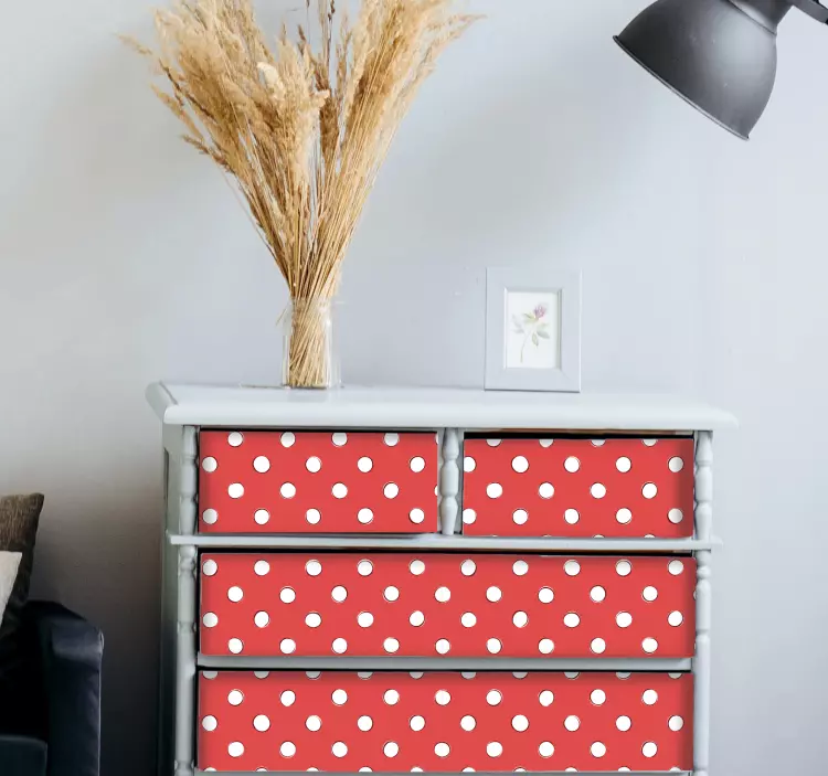 Découvrez notre adhésif meuble motif pois, un produit qui allie élégance et originalité ! Avec son design au polka et ses points délicats, il apportera une touche de modernité à vos meubles et tiroirs. Les pois rouges et blancs créent un modèle joyeux, tandis que la texture ajoute une dimension unique à votre décor. Transformez votre espace avec ce produit qui ne manquera pas d'attirer les regards !