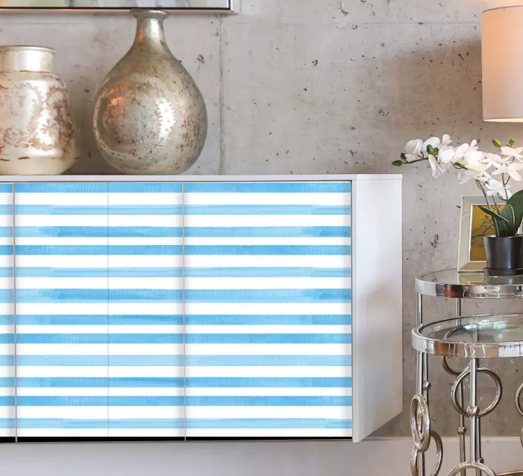 Apportez une touche moderne et texturée à votre intérieur avec l'Adhésif meuble motif rayé bleu. Son design captivant, avec des rayures bleues élégantes, transforme vos meubles en véritables œuvres d'art. Les coups de peinture subtils ajoutent un charme unique, parfait pour un style contemporain.