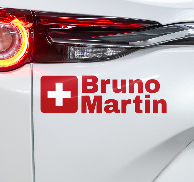 Référence: A40052Découvrez notre autocollant suisse pour voiture symbole suisse avec nom, un design graphique qui reflète la beauté et la culture de la Suisse. Ce sticker présente fièrement le drapeau suisse, accompagné du nom de votre choix, pour apporter une touche personnelle à votre véhicule. Que vous soyez un amoureux de la nature alpine ou un passionné de la culture suisse, ce produit est fait pour vous !
