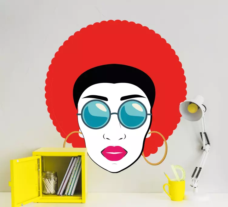 Notre conception de stickers d'art mural vintage illustre une femme aux cheveux roux avec des lunettes de soleil. Ce sticker est une décoration parfaite pour personnaliser votre espace avec une ambiance artistique de personnalité urbaine. Facile à appliquer sur le mur et sur toute surface plane, il est amovible et ne laisse pas de résidus de colle.