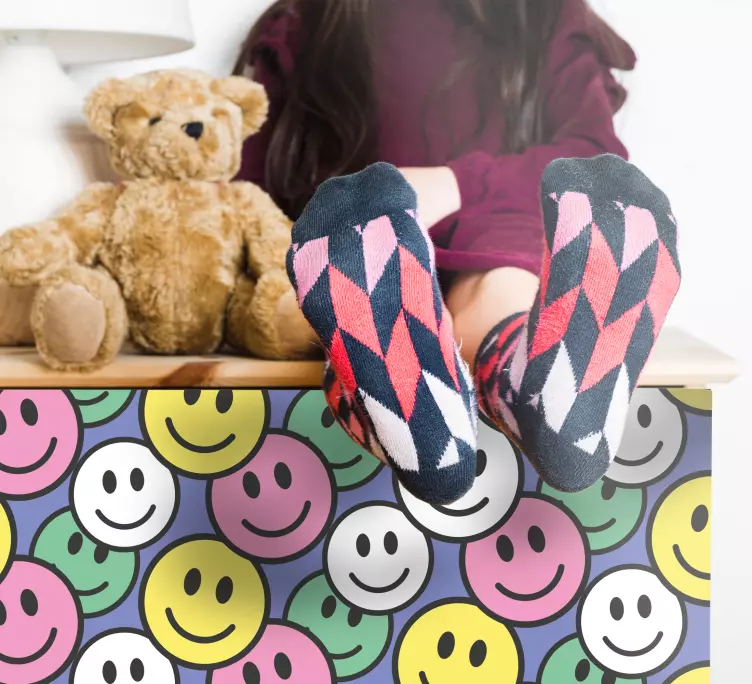 Découvrez un univers coloré et amusant avec notre Sticker autres animaux motifs de sourires colorés. Ce design espiègle et vibrant enrichit vos meubles d'une touche unique. Les nuances pastels et les motifs Smiley apportent une ambiance joyeuse et ludique, idéale pour égayer n'importe quel espace. Laissez-vous séduire par cette création qui allie élégance et amusement, parfaite pour transformer votre intérieur !