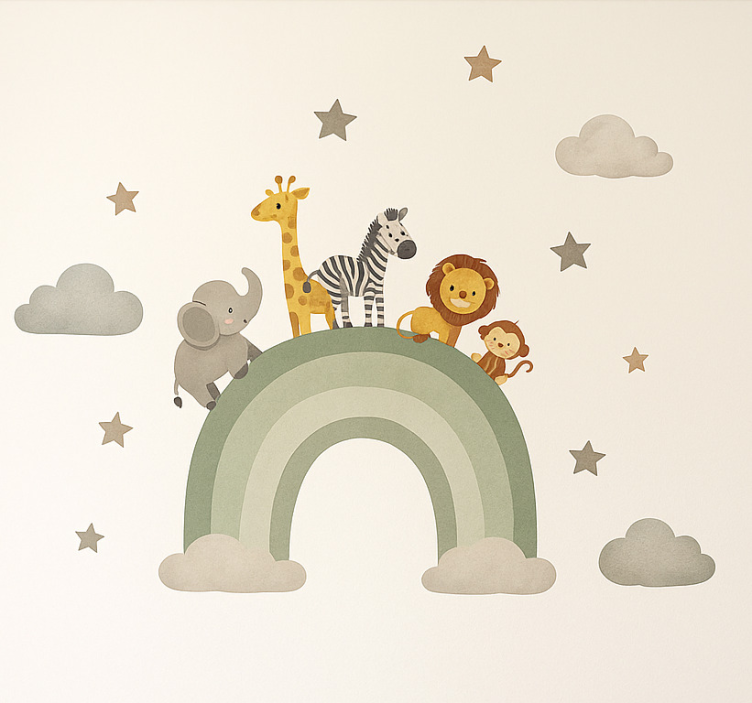 Sticker chambre enfant aventures arc-en-ciel cool animaux