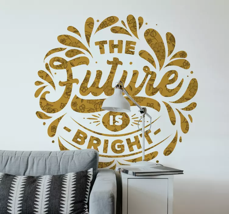 Découvrez notre Sticker citation l'avenir est radieux, un véritable éclat de positivité pour votre intérieur ! Ce design lumineux en jaune arbore une typographie inspirante et florale qui évoque un futur brillant. Laissez-vous transporter par son ambiance joyeuse et motivante qui embellira votre espace de vie.