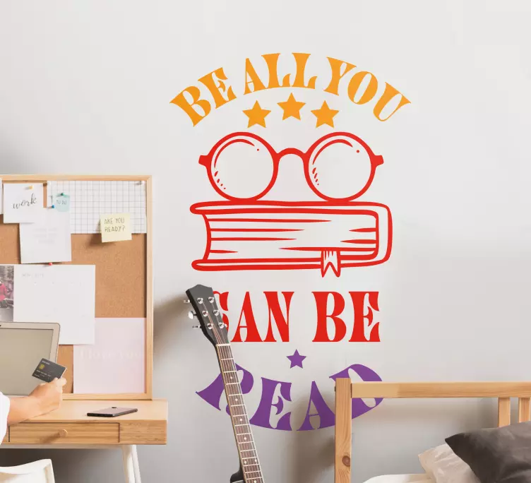 Découvrez notre Sticker citation lecture motivante, un accessoire décoratif qui insufflera une ambiance urbaine et éducative à votre espace. Avec son design captivant, ce sticker met en avant des éléments tels que des livres, des lunettes et des étoiles, le tout accompagné d'un texte inspirant qui vous motivera à plonger dans la lecture. Laissez-vous séduire par ce mélange de créativité et d'inspiration !