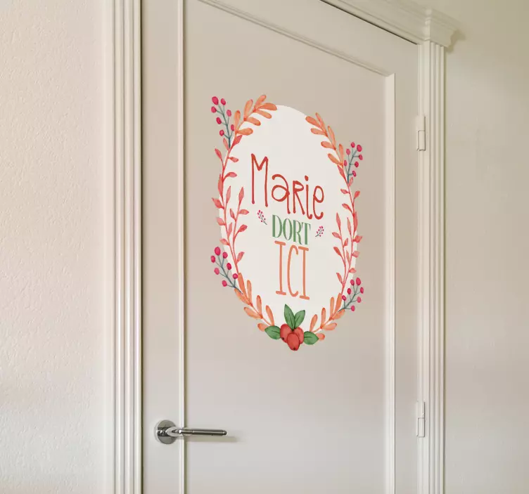 L'adhésif porte le nom personnalisé dort ici est l'accessoire parfait pour personnaliser votre espace de sommeil. Il crée une atmosphère chaleureuse et accueillante, tout en ajoutant une touche florale élégante à votre porte. Donnez à votre espace un aspect unique et personnalisé avec cet autocollant de porte inspirant!