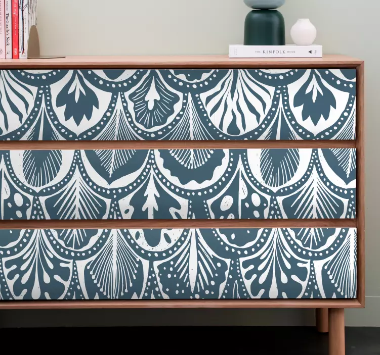 Découvrez notre Sticker déco style imprimé floral qui apporte une touche unique à votre intérieur. Avec un design captivant inspiré des écaille de poisson, ce modèle aux teintes bleu et aux motifs floraux et ornementaux crée une texture visuelle fascinante. Il s'intègre parfaitement à tous vos meubles, transformant chaque espace en un véritable sanctuaire de beauté et de sérénité.
