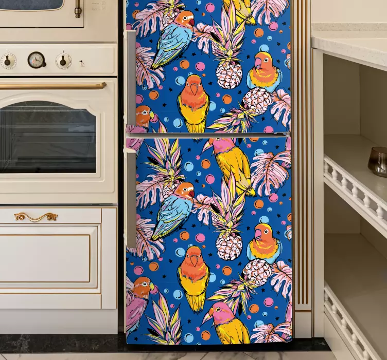 Apportez une touche de fraîcheur à votre intérieur avec notre Sticker frigo design perroquets colorés. Ce magnifique motif met en avant des perroquets vibrants entourés d'ananas, évoquant une ambiance tropicale grâce à ses couleurs vives. Chaque regard sur ce sticker frigo vous plongera dans la nature luxuriante, transformant votre réfrigérateur en un véritable chef-d'œuvre artistique.