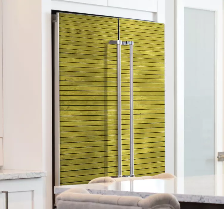 Transformez votre réfrigérateur en une œuvre d'art avec notre Sticker frigo effet planche en bois. Ce design unique allie une texture de bois authentique à des teintes de vert et de jaune, apportant une ambiance chaleureuse et accueillante à votre cuisine. Offrez à votre frigo une nouvelle vie avec cette décoration qui évoque le charme des planches en bois.