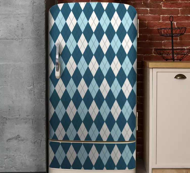 Apportez une touche de modernité à votre réfrigérateur avec notre Sticker frigo motif losanges. Ce modèle élégant, qui arbore un motif géométrique de losanges et de diamants bleu, est conçu pour transformer l’apparence de votre frigo en un clin d'œil. Son design captivant attire le regard et crée une ambiance chic et contemporaine dans votre cuisine.