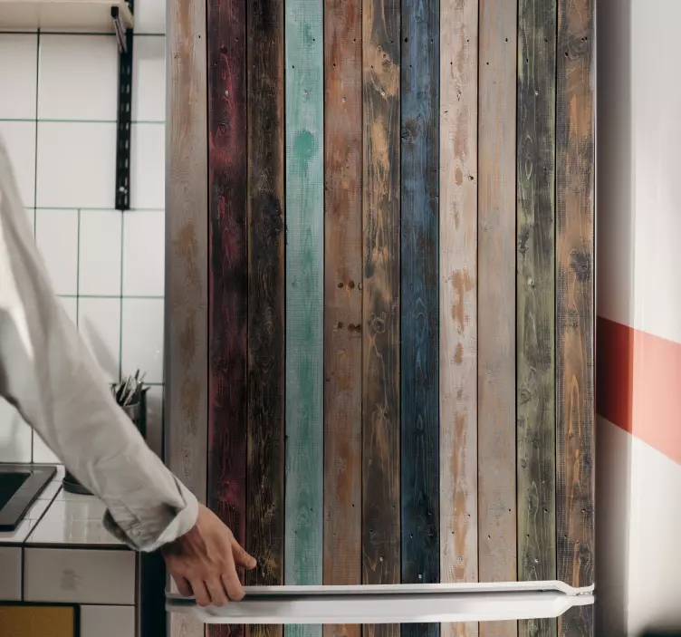 Apportez une touche chaleureuse à votre intérieur avec notre Sticker frigo planches en bois style campagne. Ce motif captivant, inspiré des planches de bois peintes, évoque un style rustique et coloré. Avec sa texture unique, il transforme votre réfrigérateur en une véritable œuvre d'art verticale qui attire tous les regards.
