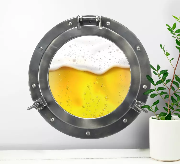 Sticker gastronomie vue sur porthole de bière