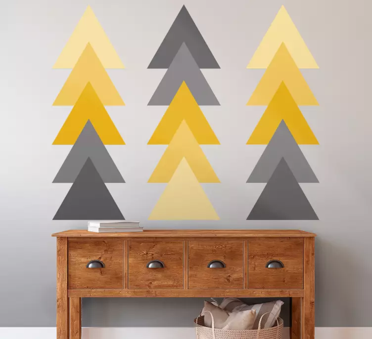 Découvrez notre Sticker géométrique agencement triangulaire, une pièce décorative moderne qui apporte une touche abstraite et dynamique à votre intérieur ! Ce modèle arbore des triangles et des flèches dans des tons de jaune et gris, créant un effet visuel captivant. Son design géométrique se marie parfaitement avec divers styles d'intérieur, rendant chaque espace unique et inspirant.