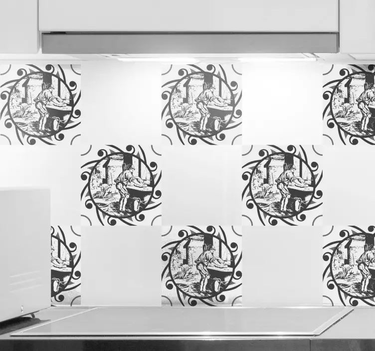 Découvrez notre Sticker objet scène artisanale vintage qui capture l'essence même de l'artisanat traditionnel. Avec un design en noir et blanc, ce sticker évoque des images de pâtisserie, d'une personne en pleine création, et de tuiles élégantes, le tout dans une gravure artistique et abstraite qui saura embellir votre espace !