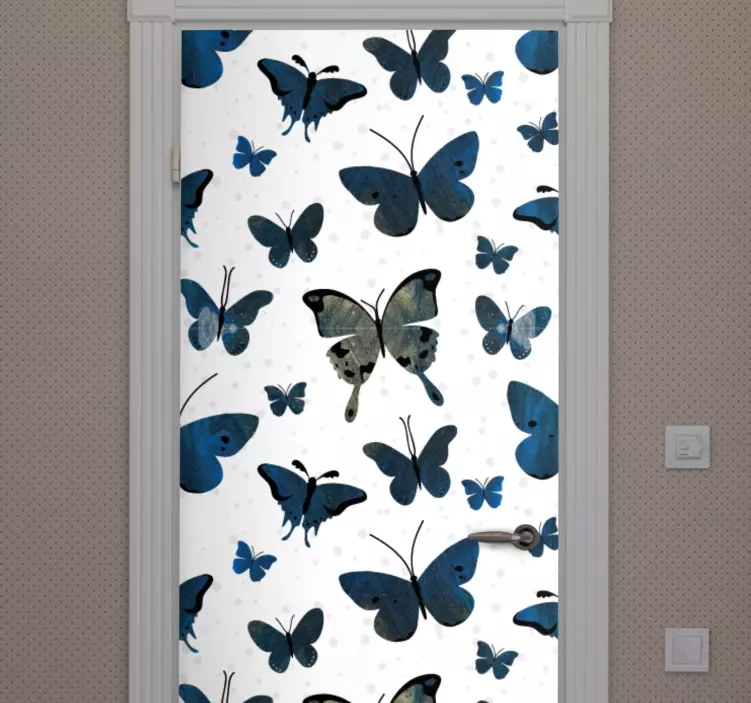 Découvrez notre Sticker porte motifs de papillons variés, une véritable œuvre d'art graphique inspirée de la nature. Avec ses tons bleus apaisants et ses papillons délicatement dessinés, cet autocollant transformera votre porte en un élément décoratif unique. Chaque détail a été pensé pour apporter une touche de fraîcheur et d'élégance à votre intérieur, tout en reflétant la beauté de la nature.