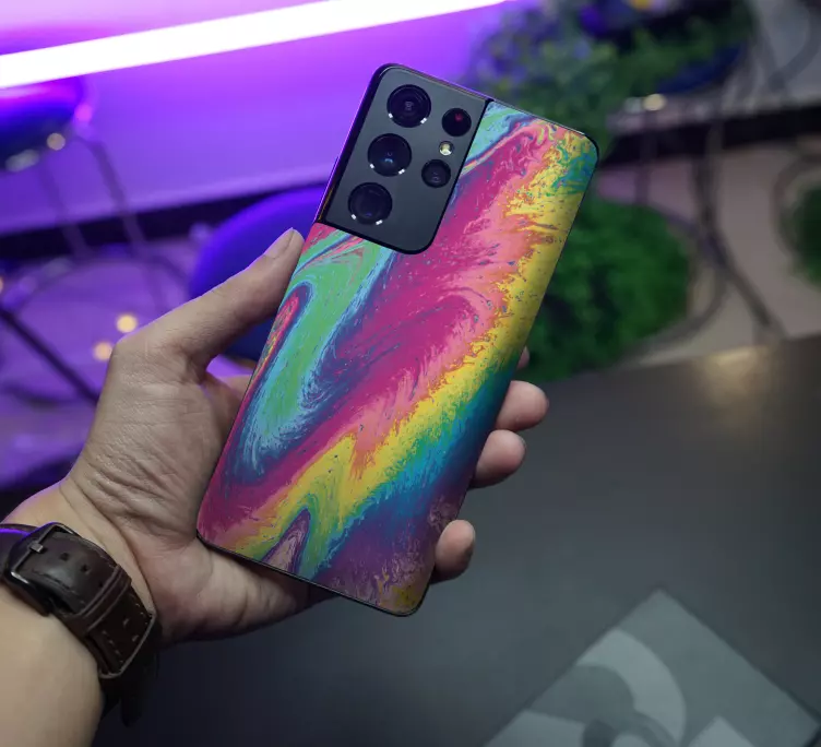 Référence: A49208Un design vibrant avec des couleurs tourbillonnantes de rose, bleu, vert et jaune, créant un motif fluide fascinant. Ce motif accrocheur est parfait pour embellir des objets personnels et ajoute une touche moderne à tout appareil.