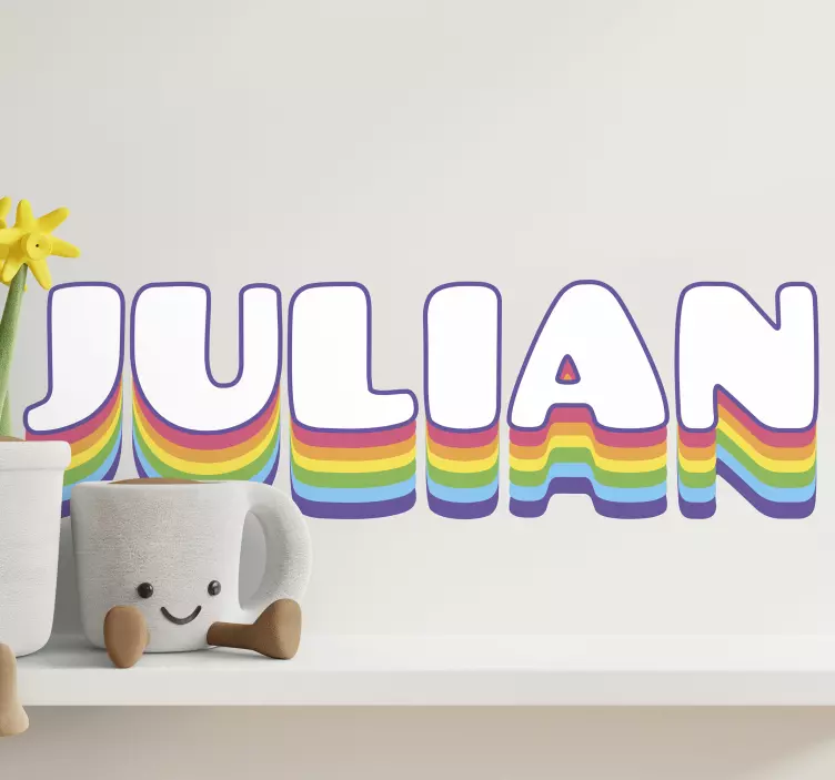 Transformez votre espace avec le Sticker texte création de noms Éclatants ! Ce design espiègle et vibrant, orné de motifs arc-en-ciel, est entièrement personnalisable pour ajouter une touche unique à votre décoration. Que vous souhaitiez afficher un nom ou une citation inspirante, ce sticker illuminera votre espace de vie.