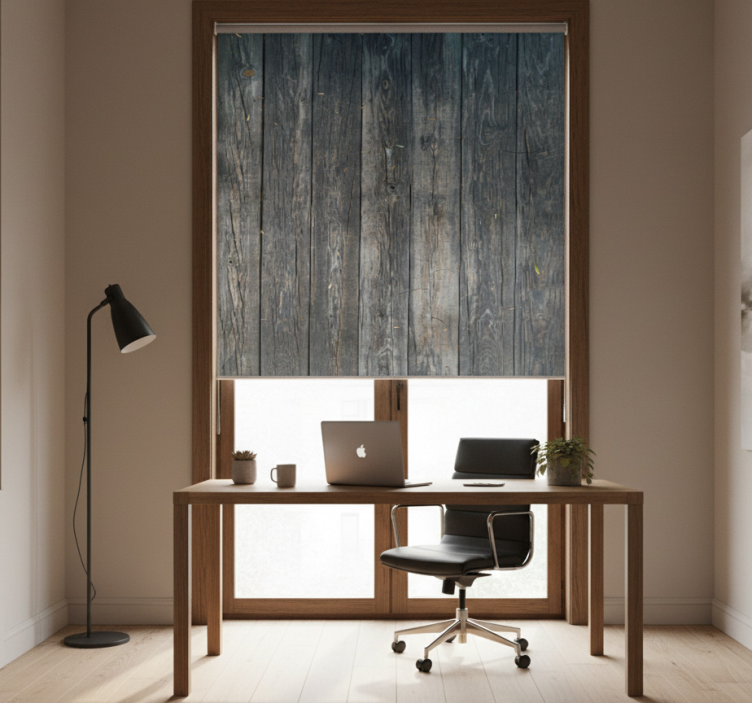 Store enrouleur bureau motif rustique gris cassé