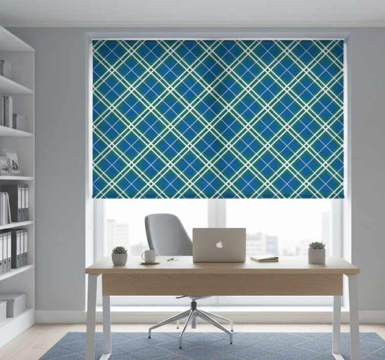 Store enrouleur bureau tartan écossais bleu et vert
