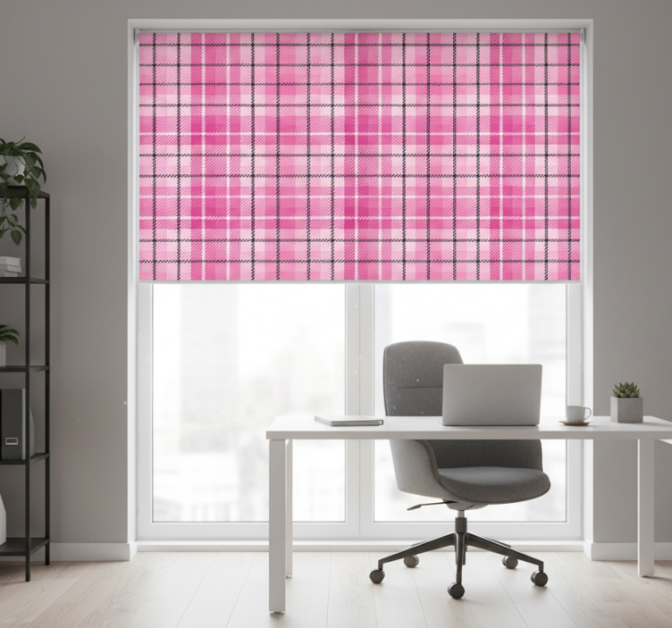 Référence: E6236Le store enrouleur bureau tartan rose et noir est une véritable œuvre d'art pour votre espace de travail ! Avec son motif élégant et moderne, il apporte une touche de sophistication tout en se mariant parfaitement avec divers styles de décoration. Les nuances de rose et de noir créent un contraste visuel saisissant, transformant instantanément l'ambiance de votre bureau en un lieu inspirant et agréable.