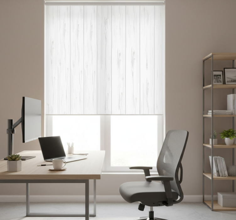Store enrouleur bureau texture bois blanc moderne