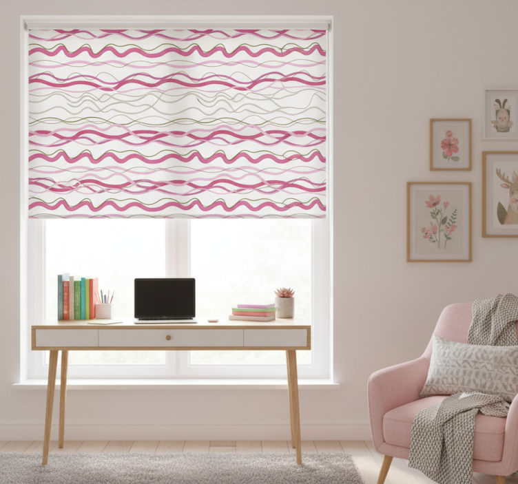 Store enrouleur rose à rayures ondulées