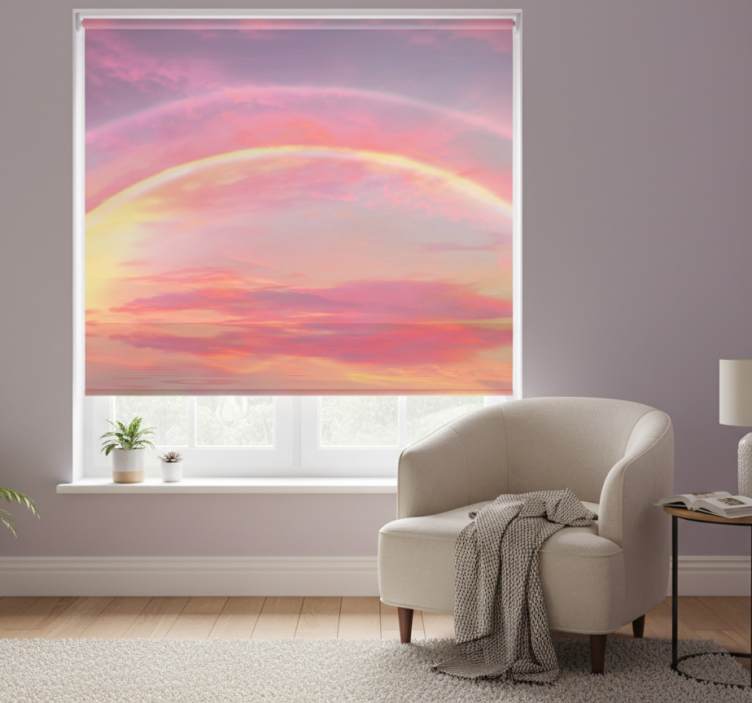 Store enrouleur rose ciel rose avec arc-en-ciel