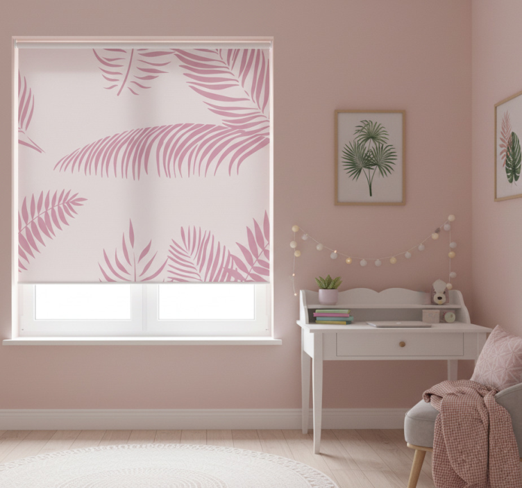 Store enrouleur rose grandes feuilles de palmier