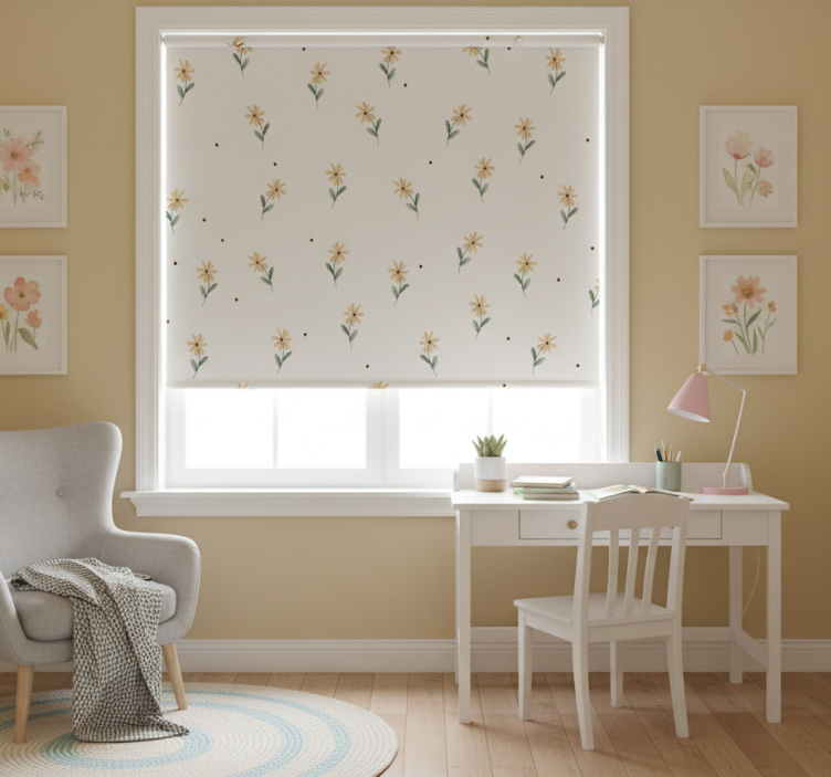 Référence: E8160Ajoutez une touche de fraîcheur à votre intérieur avec le store enrouleur rose marguerites jaunes. Ce design enchanteur, mettant en avant des fleurs éclatantes sur un fond doux, apporte une atmosphère joyeuse et vivifiante à n'importe quelle pièce. Que ce soit pour votre salon, votre chambre ou votre bureau, ce store est l'élément décoratif idéal pour égayer votre espace !