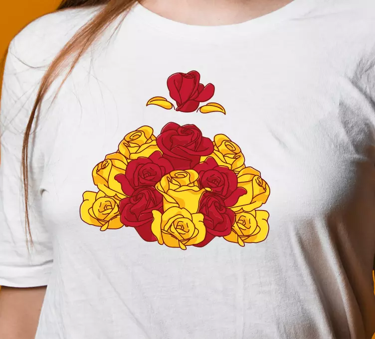 Référence: T4388Cette image vibrante présente un magnifique bouquet de roses aux teintes rouges et jaunes. Les fleurs sont artistiquement disposées, créant un effet visuel saisissant. Parfait pour les célébrations ou comme cadeau, ce design met en valeur la beauté de la nature et le charme des arrangements floraux.