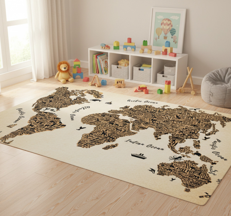Référence: R23110Apportez une touche d'aventure à votre intérieur avec ce Tapis vinyle carte du monde avec textes profilés. Son design captivant évoque des paysages lointains et invite à l'exploration. Chaque détail du motif, de ses contours délicats à ses couleurs vibrantes, crée une atmosphère unique qui embellira n'importe quelle pièce. En plus d'être esthétiquement plaisant, ce tapis se distingue par sa fonctionnalité, alliant art et utilité.