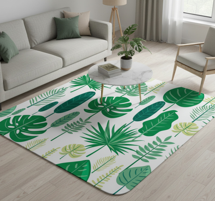 Tapis vinyle fleurs et plantes monstera décoratif