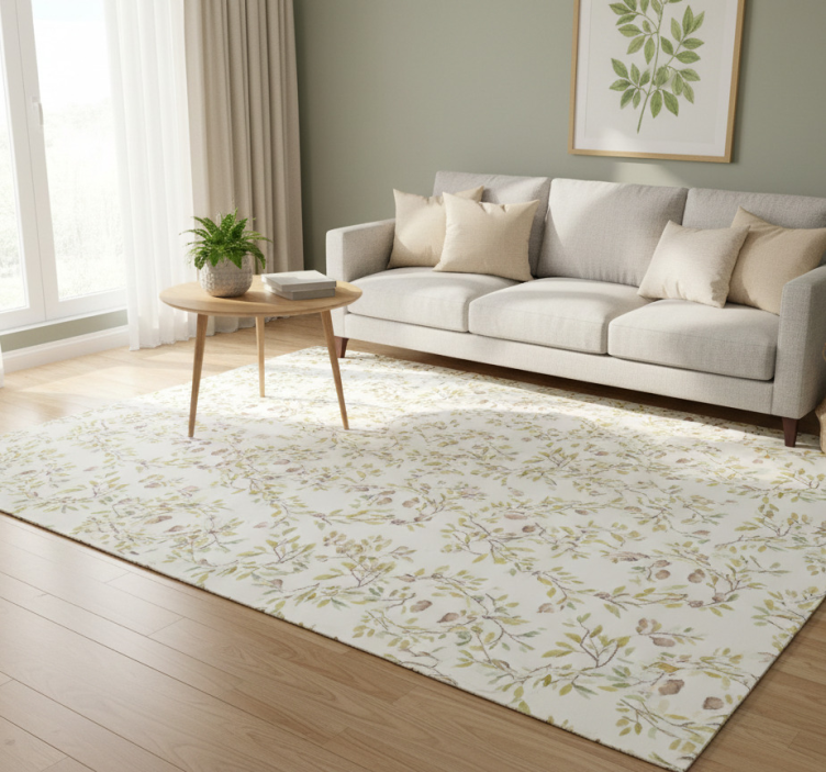 Tapis vinyle fleurs et plantes motif aquarelle feuilles