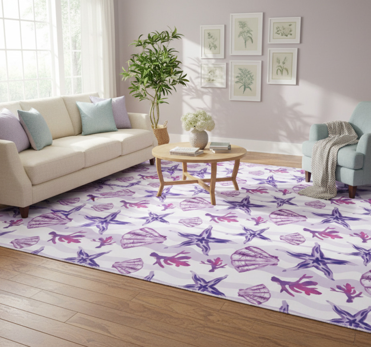 Tapis vinyle fleurs et plantes motif coquillage corail