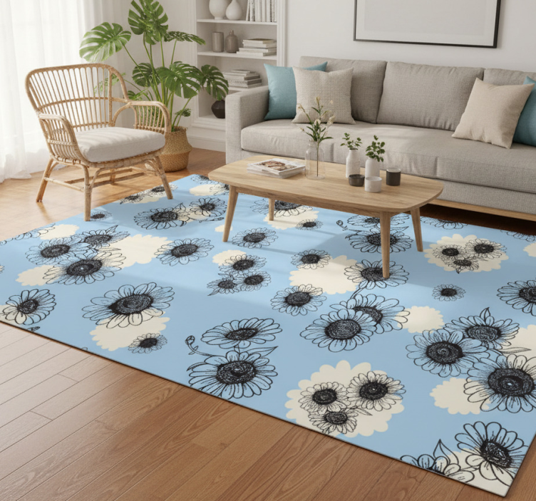 Tapis vinyle fleurs et plantes motif marguerites moderne