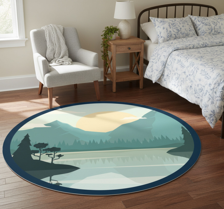 Tapis vinyle fleurs et plantes silhouette montagne lac