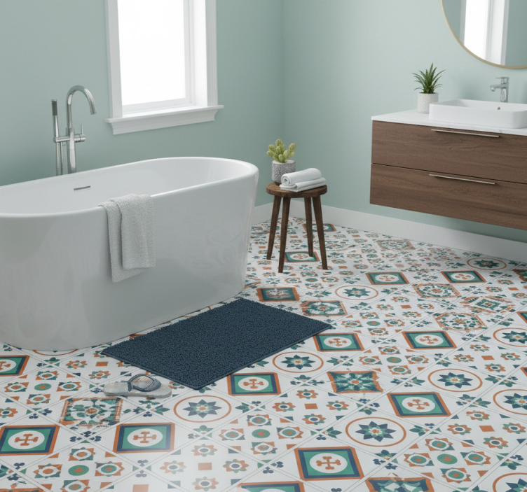 Tapis vinyle salle de bain carreaux géométriques